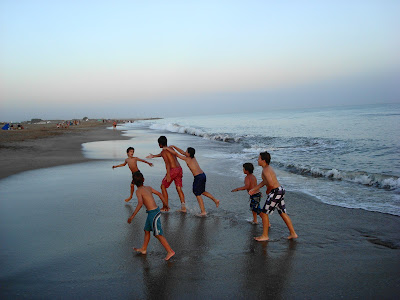Apuro a Martín. Volvemos por la playa. El Balneario parece una romería: uno pegado al otro. Nunca voy a entender que es lo que encuentran de placentero el estar todos pegoteados. Saliendo de la multitud, encuentro la paz. El espacio necesario para caminar y sentirme libre.
